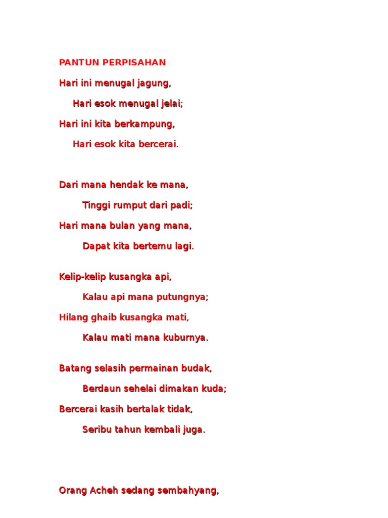 Perpisahan selalu menjadi momen paling sedih dan mengharukan. Pantun Perpisahan Bagi Pasangan. 50 Pantun Perpisahan untuk Rekan Kerja dan Bos Pimpinan.